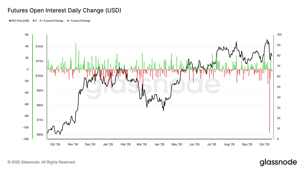 Недавний обвал открытого интереса к фьючерсам на биткоин входит в число крупнейших однодневных спадов в истории, ликвидировав более $10 миллиардов номинальных позиций. Это знаменует собой масштабное истощение рынка деривативов, сопоставимое по масштабам с ликвидацией в мае 2021 года и закрытием FTX в 2022 году.