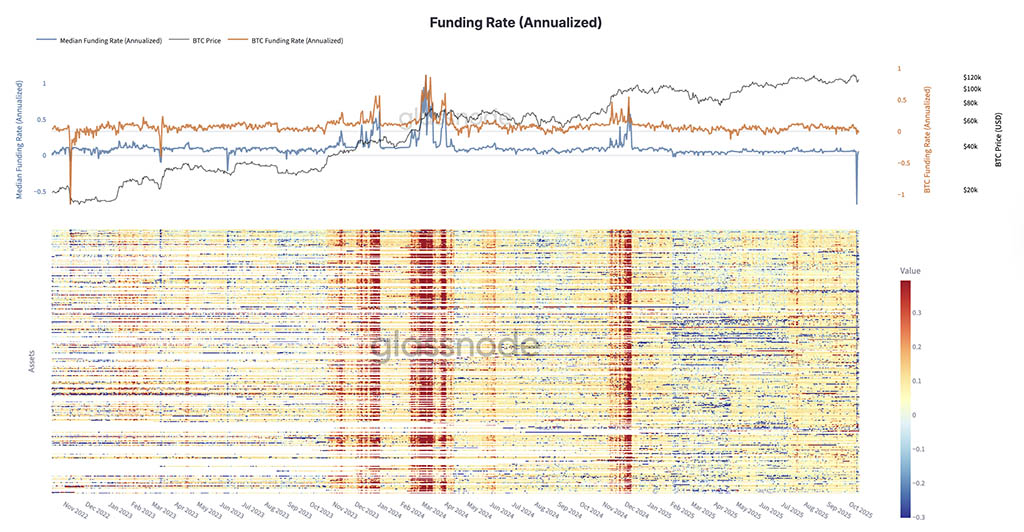 После исторического сброса заемных средств напряженность на рынке фьючерсов усилилась, поскольку ставки финансирования упали до уровней, не наблюдавшихся со времен краха FTX в конце 2022 года.