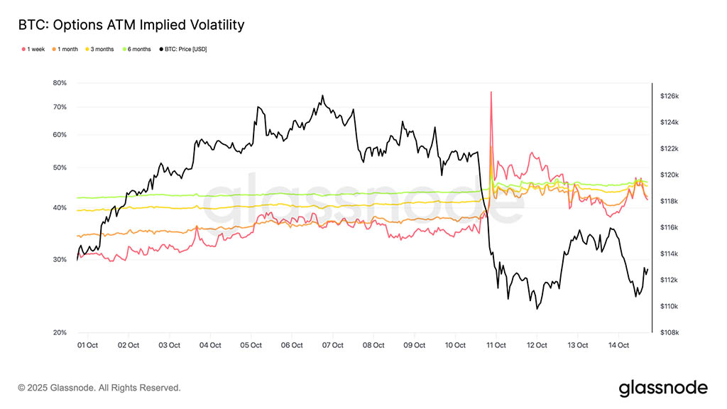 Разрыв между краткосрочными и долгосрочными волатильностями возник из-за этого дисбаланса: краткосрочная паника и вынужденная скупка на раннем этапе по сравнению с более долгосрочными, когда трейдеры уже снижали динамику и продавали волатильность, поскольку давление ликвидации начало ослабевать.