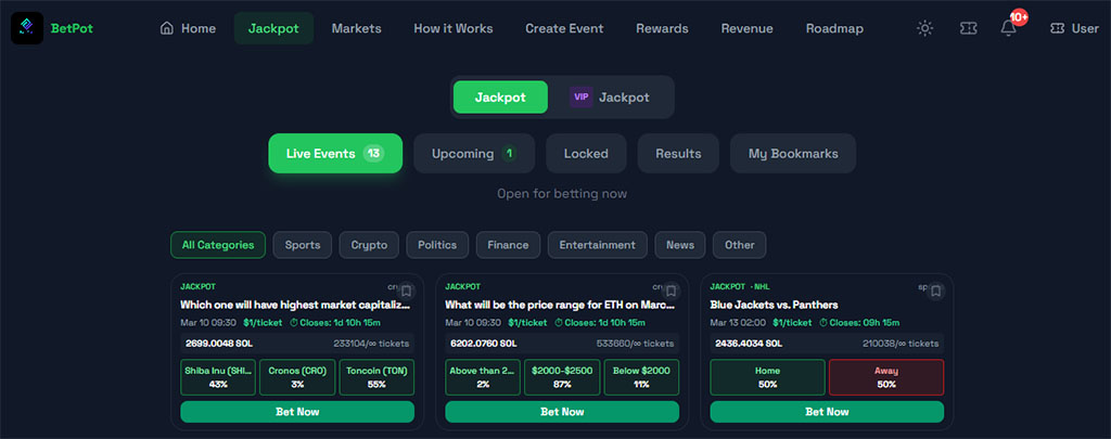 BetPot — это децентрализованная, некастодиальная платформа для ставок нового поколения, разработанная для обеспечения прозрачности, честности и азарта в мире спортивных ставок. Используя технологию блокчейна Solana, BetPot гарантирует безопасную запись каждой ставки в блокчейне и гарантию каждой выплаты самим смарт-контрактом.