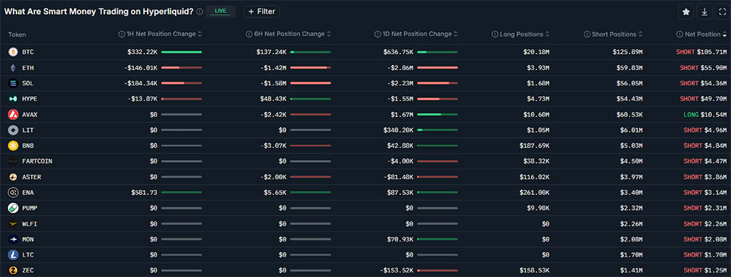 Согласно данным криптоаналитической платформы Nansen, трейдеры с крупными капиталами имели совокупную чистую короткую позицию по BTC на сумму $105 миллионов и чистую короткую позицию по большинству основных криптовалют, за исключением AVAX, у которой чистая длинная позиция составила $10,5 миллионов.