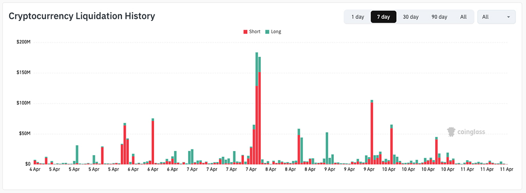 Данные CoinGlass показали, что за 24 часа до момента публикации общая сумма ликвидаций по различным криптовалютам составила менее $100 миллионов.