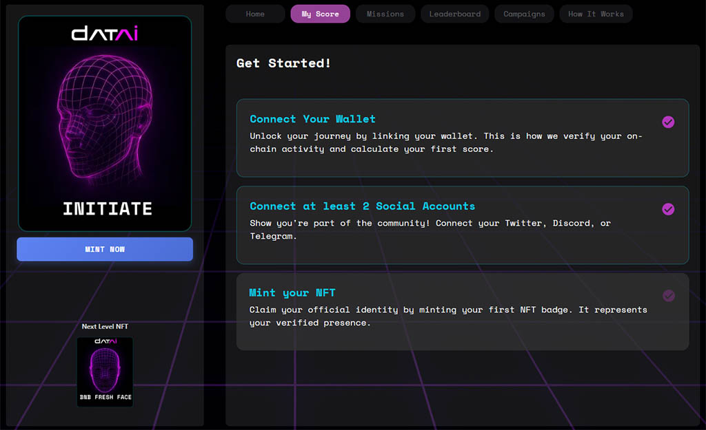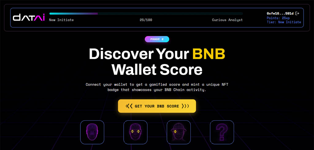 Datai Network запустила вторую фазу интерактивной маркетинговой кампании, цель которой — вознаграждать пользователей за изучение ончейн-аналитики и выполнение различных заданий. Фаза 2 включает в себя получение участниками BNB Wallet Score, основанный на активности в блокчейне BNB Chain и имеющихся активах. Участвуя во второй кампании, пользователи продолжают накапливать поинты DATUM.