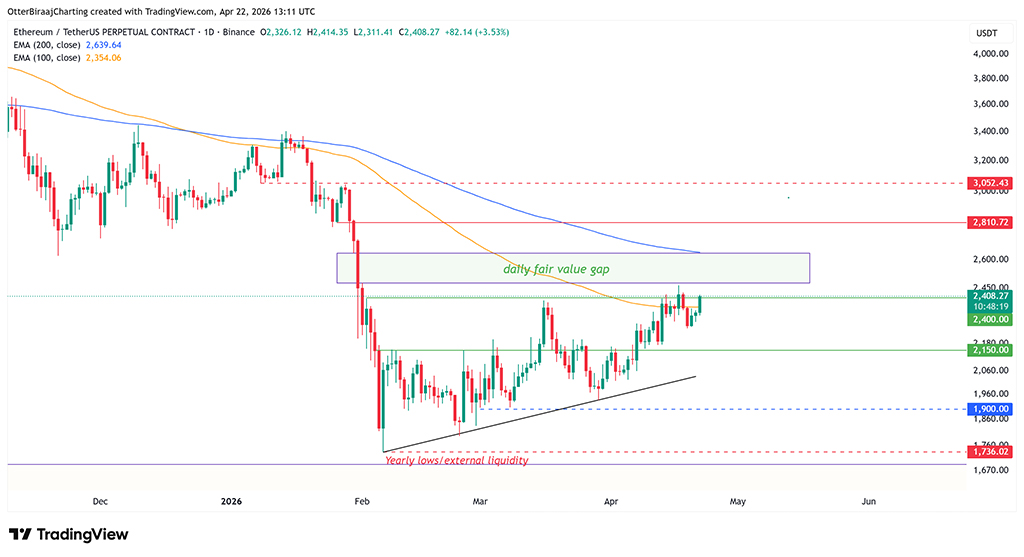 Уровень сопротивления ETH в $2400 сталкивается с дефицитом ликвидности