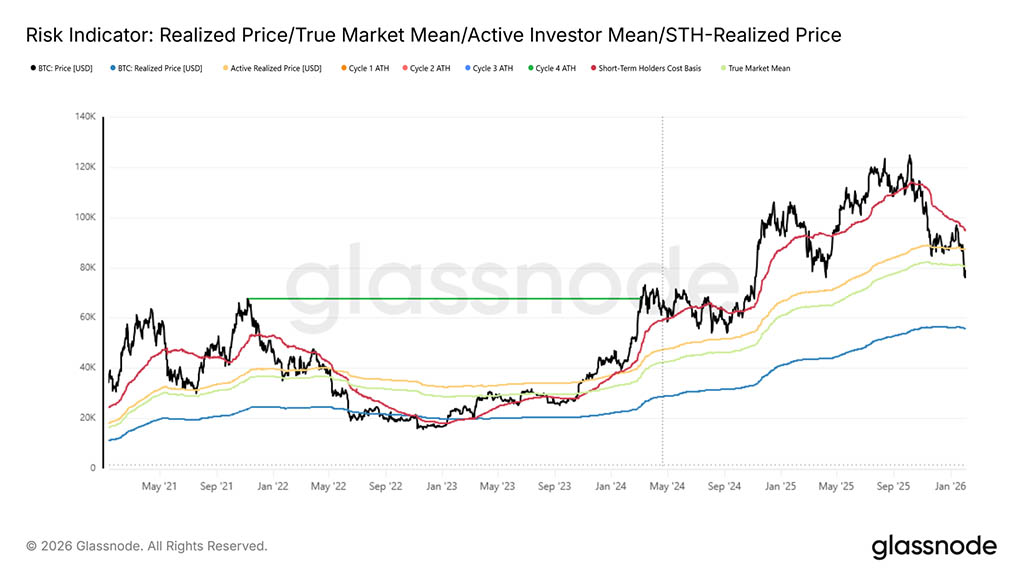 После перестройки структурной основы внимание, естественно, переключается на стабилизацию снижения. По мере того, как рынок все глубже погружается в эту фазу цикла, ключевой вопрос смещается в сторону определения зон, где может начать формироваться устойчивое дно. Хотя ни один отдельный показатель не может определить это с уверенностью, несколько инструментов, работающих в блокчейне, позволяют понять, где может возникнуть краткосрочный спрос.