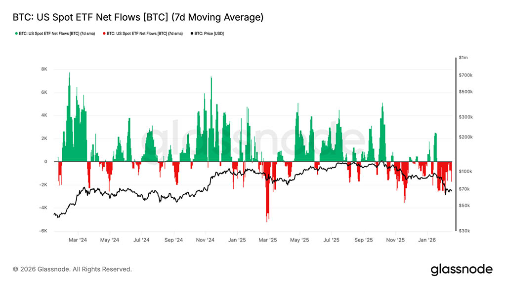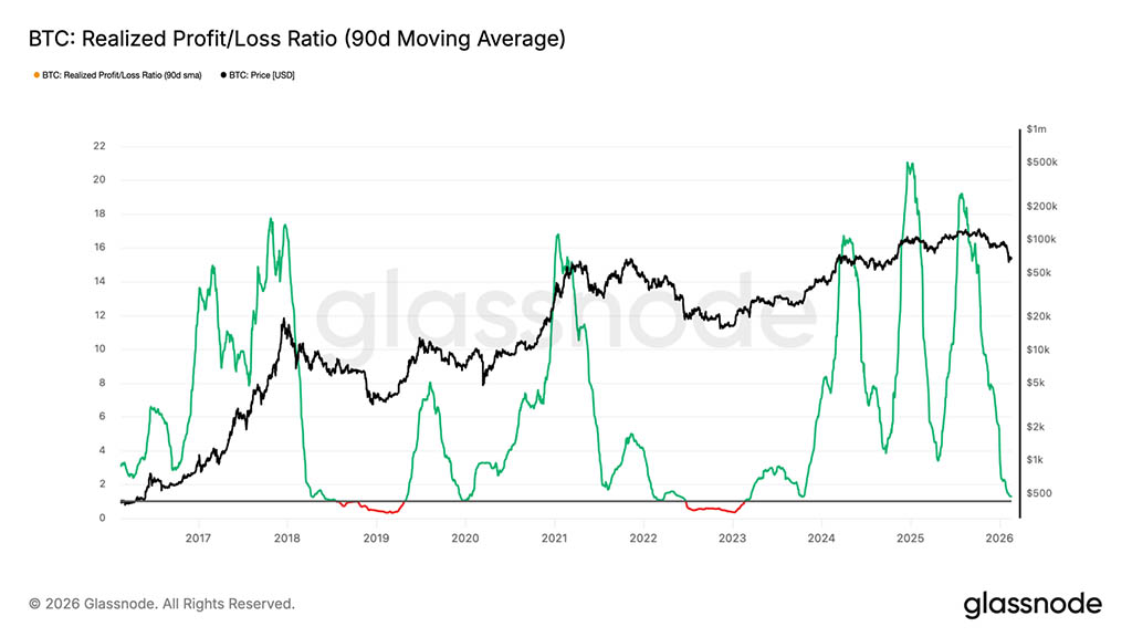 Позиционирование этой группы инвесторов вблизи уровней безубыточности, по-видимому, смягчило дополнительное давление со стороны продавцов, способствуя формированию еще одной боковой структуры с конца января 2026 года. Защита диапазона $60000–$69000 свидетельствует о том, что среднесрочные держатели акций остаются устойчивыми, позволяя рынку перейти от импульсивного падения к поглощению в рамках ограниченного диапазона.