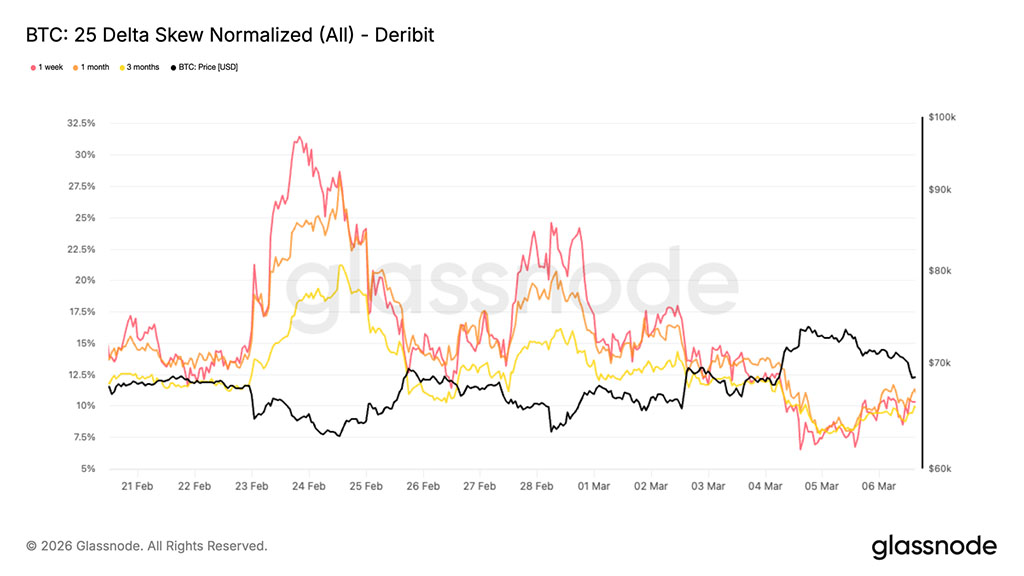 По сути, асимметрия измеряет относительный спрос на защиту по сравнению с участием в сделке. Когда трейдеры агрессивно хеджируют риски снижения стоимости активов, пут-опционы становятся значительно дороже колл-опционов. По мере уменьшения этого дисбаланса обычно сигнализируется о том, что рынок снова начинает чувствовать себя более комфортно, принимая направленные риски.