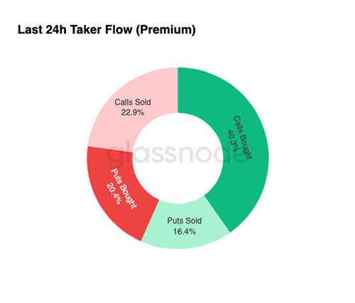 Крупнейшие сделки с опционами за последние 24 часа были сосредоточены на покупке колл-опционов, на которую приходится 40,3% от общего объема операций с опционами. За прошедшую неделю покупка колл-опционов уже доминировала, составляя 27,8% от общего объема операций с опционами. Эта тенденция ускорилась, и за последние 24 часа доля покупок колл-опционов выросла до 40,3%.