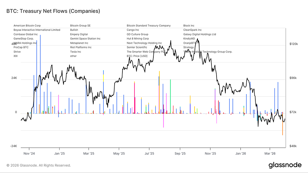 Наиболее примечательно, что Marathon продал около 15000 BTC, что является одним из самых ярких недавних примеров того, как корпоративное казначейство сокращает, а не увеличивает свои инвестиции. На этом фоне Strategy, похоже, остается единственным стабильным структурным покупателем, продолжая периодически совершать покупки, даже несмотря на то, что участие других компаний стало более спорадическим.