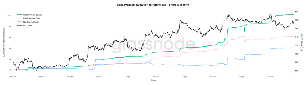 На краткосрочных и среднесрочных контрактах на уровне $80000 наблюдается устойчивый рост спроса, что указывает на растущий интерес к восходящей позиции вблизи этого уровня. Это говорит о том, что трейдеры готовятся к тестированию уровня сопротивления, а не к его преодолению.