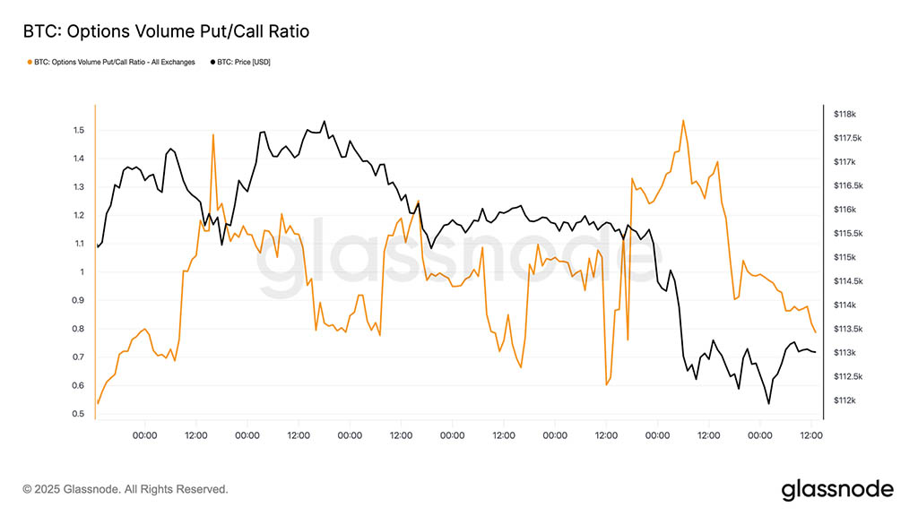 В то же время открытый интерес к фьючерсам резко упал с $44,8 млрд до $42,7 млрд, поскольку биткоин опустился ниже $113000. Это событие, вызвавшее снижение кредитного плеча, привело к сокращению длинных позиций с использованием кредитного плеча, усилив нисходящее давление. Хотя в тот момент это дестабилизировало рынок, сброс цен помог избавиться от избыточного кредитного плеча и восстановить баланс на рынках деривативов.