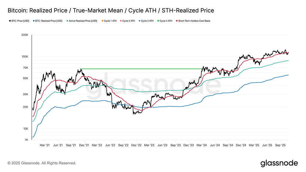 После отскока в выходные биткоин ненадолго восстановился до уровня стоимости краткосрочных держателей вблизи $113100 — уровня, который часто считается границей между бычьим и медвежьим трендами. Удержание этого порога обычно свидетельствует о том, что спрос достаточно силён, чтобы справиться с продолжающимся давлением продаж. Однако, если биткоин не удержался выше этого уровня, особенно после шести месяцев стабильного роста, это говорит о снижении спроса.