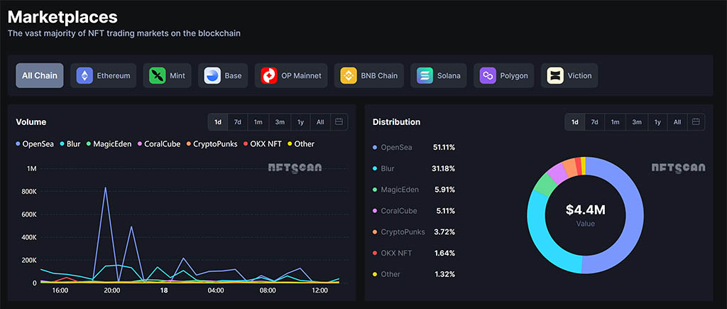В апреле этого года OpenSea удалось вернуть себе лидерство на рынке NFT, заняв более 40% от общего объёма торгов за месяц. На момент написания статьи OpenSea является крупнейшей торговой площадкой NFT с долей рынка 51%, согласно данным NFTScan.