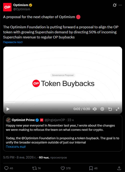 Обсуждение предложения продолжается на форуме управления Optimism. 12 января запланирована встреча с руководством Optimism, а официальное голосование состоится 22 января. В случае одобрения программа выкупа акций начнется вскоре после этого.