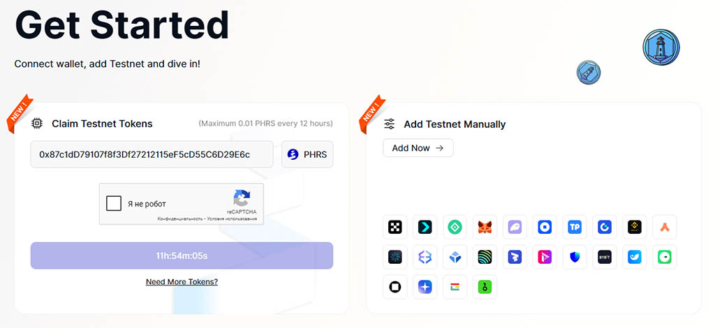 ➤ Вы можете получать 0.01 PHRS каждые 24 часа.