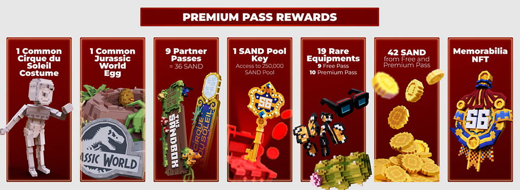 В 6-м сезоне Alpha будет действовать система боевых пропусков с двумя уровнями: бесплатным и премиум-доступом. Боевой пропуск содержит 35 уровней с набором наград NFT и SAND. Игроки, достигшие 35-го уровня премиум-доступа, получат ключ SAND Pool, открывающий доступ к призовому фонду в 250 000 SAND.