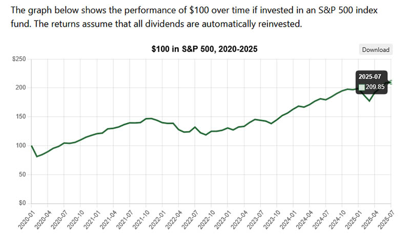 Другими словами, по данным OfficialData.Org, доход от инвестирования $100 в S&P 500 с начала 2020 года составит около $209,85 к июлю 2025 года. Те же $100, инвестированные в биткоин, будут стоить 1473,87 долларов.
