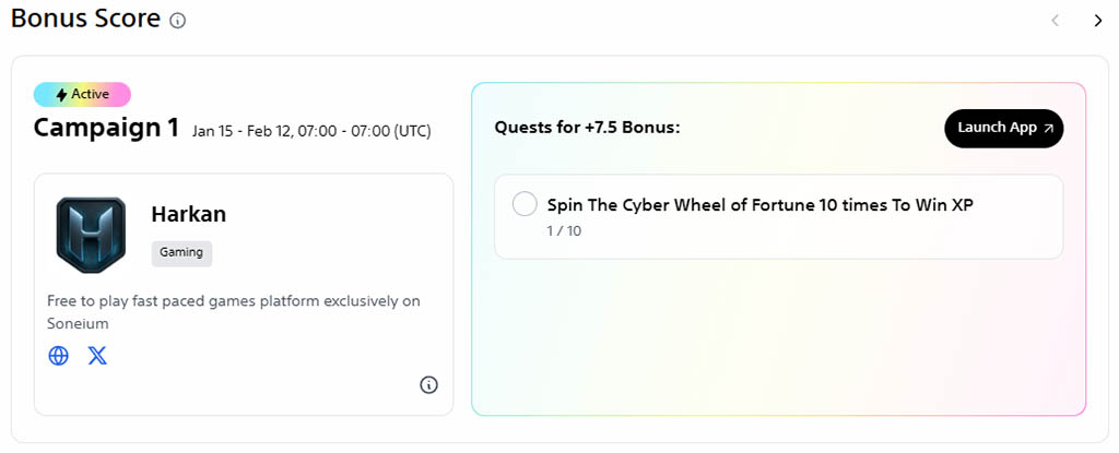 ➤ Выполнение сезонных заданий, представленных в Soneium Score.
