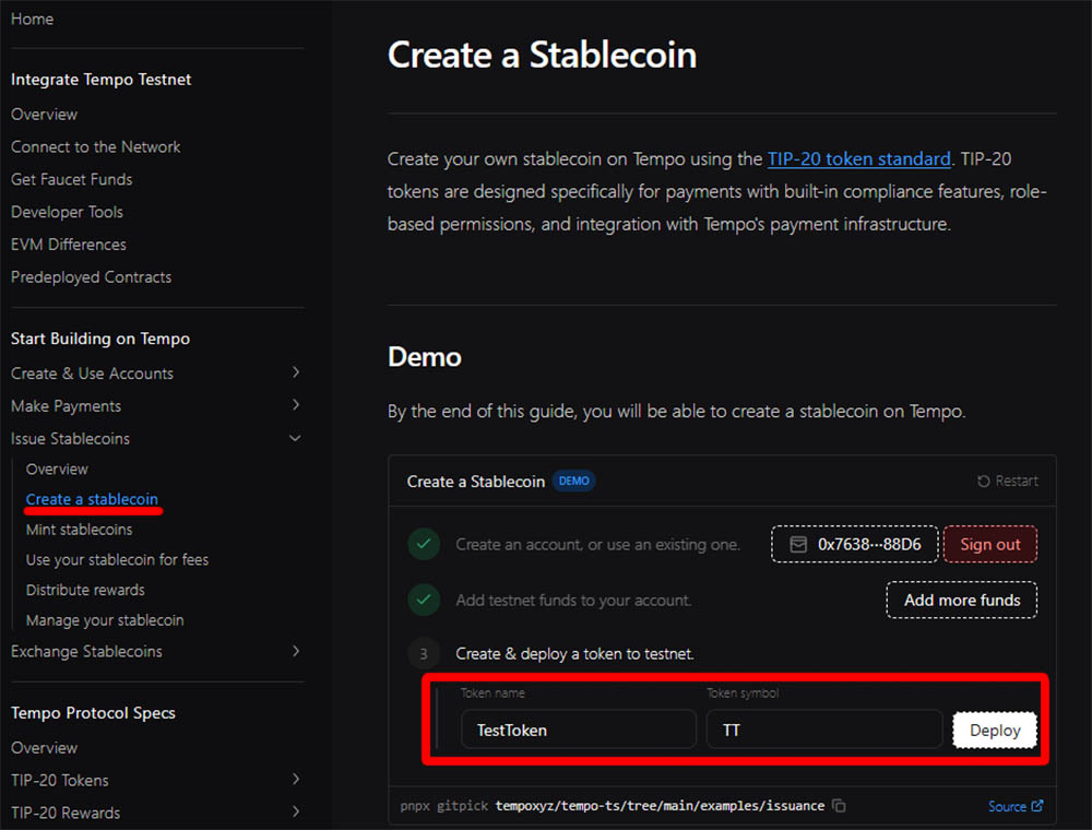 6. Разверните в сети собственный стейблкоин на странице Create a stablecoin: