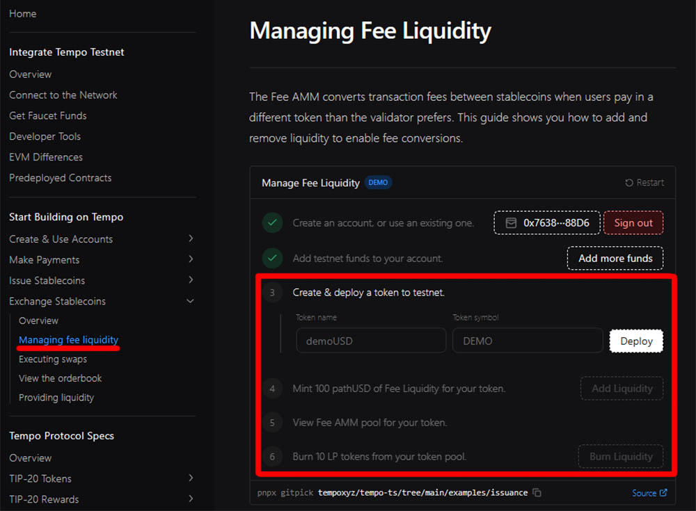 7. Управляйте конвертацией комиссий за транзакции на странице Managing fee liquidity: