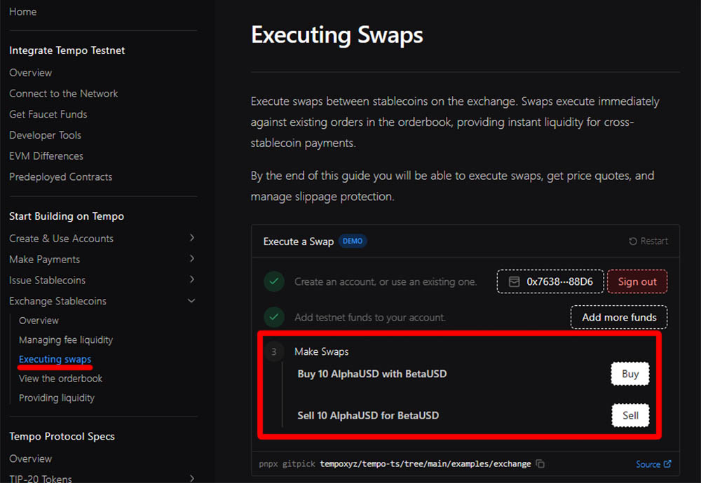 8. Совершите обмен стейблкоинов на странице Executing swaps: