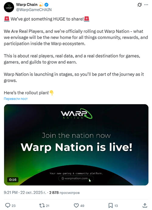 Компания Warp Chain официально объявила о запуске Warp Nation — новой платформы, призванной стать центром сообщества, наград и игровой активности в рамках её растущей экосистемы. Объявление было сделано всего за несколько недель до дебюта токена WRP на децентрализованных и централизованных биржах.