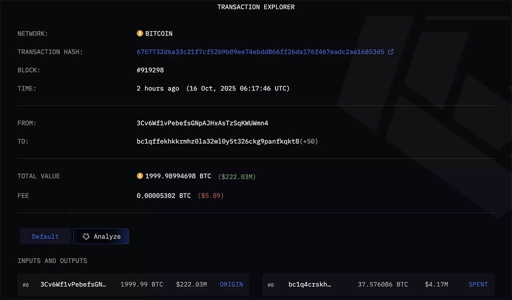 Старый Bitcoin-кит перевел 2000 BTC, что по текущим ценам составляет около $222 миллионов, на десятки новых кошельков. Судя по всему, это был тщательно скоординированный шаг.